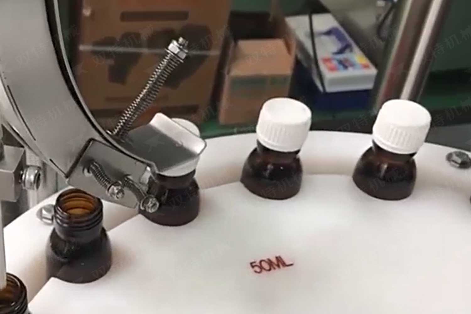 旋蓋機主要用于玻璃廣口瓶的三、四、六鐵蓋真空旋蓋,用兩根不同速度的皮帶壓瓶蓋,因兩根皮帶的速度不同,對蓋進行搓蓋收緊達到旋蓋目的。在自動上蓋之前對瓶口吹蒸汽加熱,吹掉冷空氣,換上高溫蒸汽,立即旋蓋,根據(jù)熱脹冷縮原理,蒸汽冷下來就自然形成了瓶內(nèi)真空,達到了真空旋蓋的目的。自動旋蓋機可以和濃醬灌裝機、蜂蜜灌裝機、辣椒醬灌裝機組合在一起,形成一套全自動灌裝設(shè)備,是現(xiàn)代調(diào)味品企業(yè)的得力幫手。